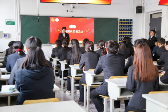 随后,优秀共青团员代表常雪莹、党员代表兰雨欣相继发言,让大家感受到青春如诗,团徽闪耀。49名新团员纷纷表示要以共青团员的身份为引领,在新时代的浪潮中,扬起理想的风帆,奋力拼搏。要以坚定的信念、饱满的热情、昂扬的斗志,积极投身到学习和社会实践中去。