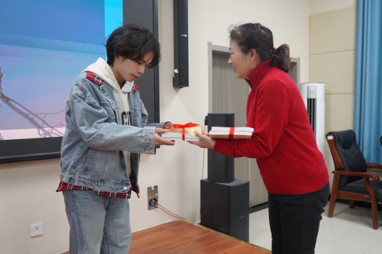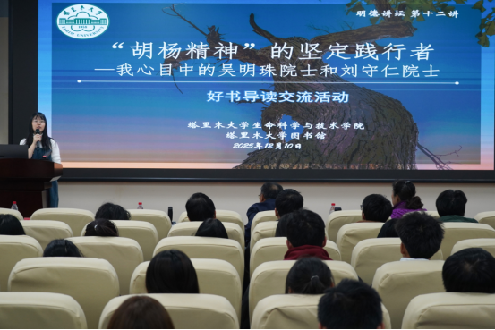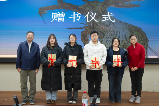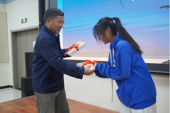 ,向现场参会学生赠送《吴明珠传》《刘守仁传》书籍,鼓励大家认真研读,从院士事迹中汲取精神养分,将胡杨精神内化于心、外化于行。